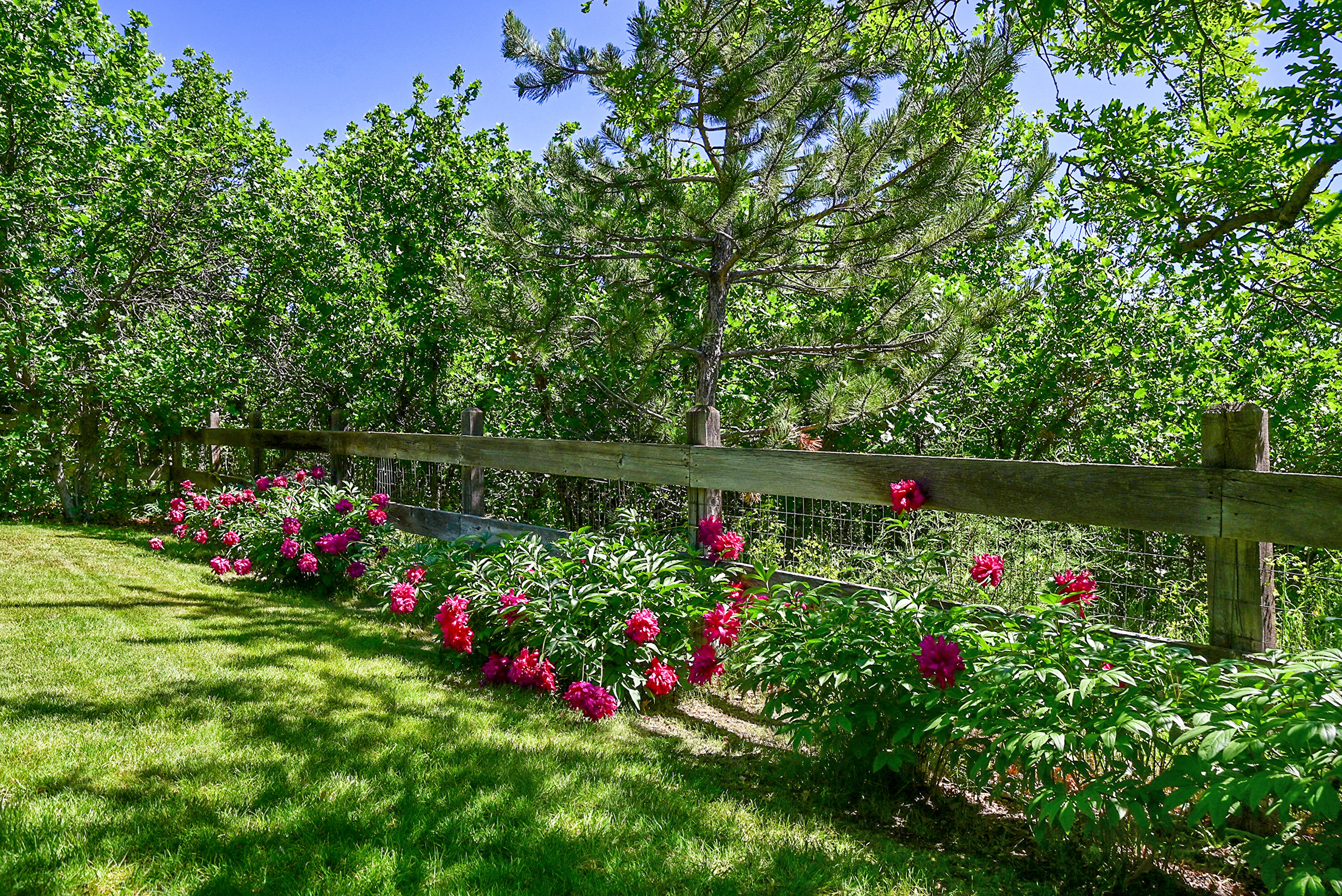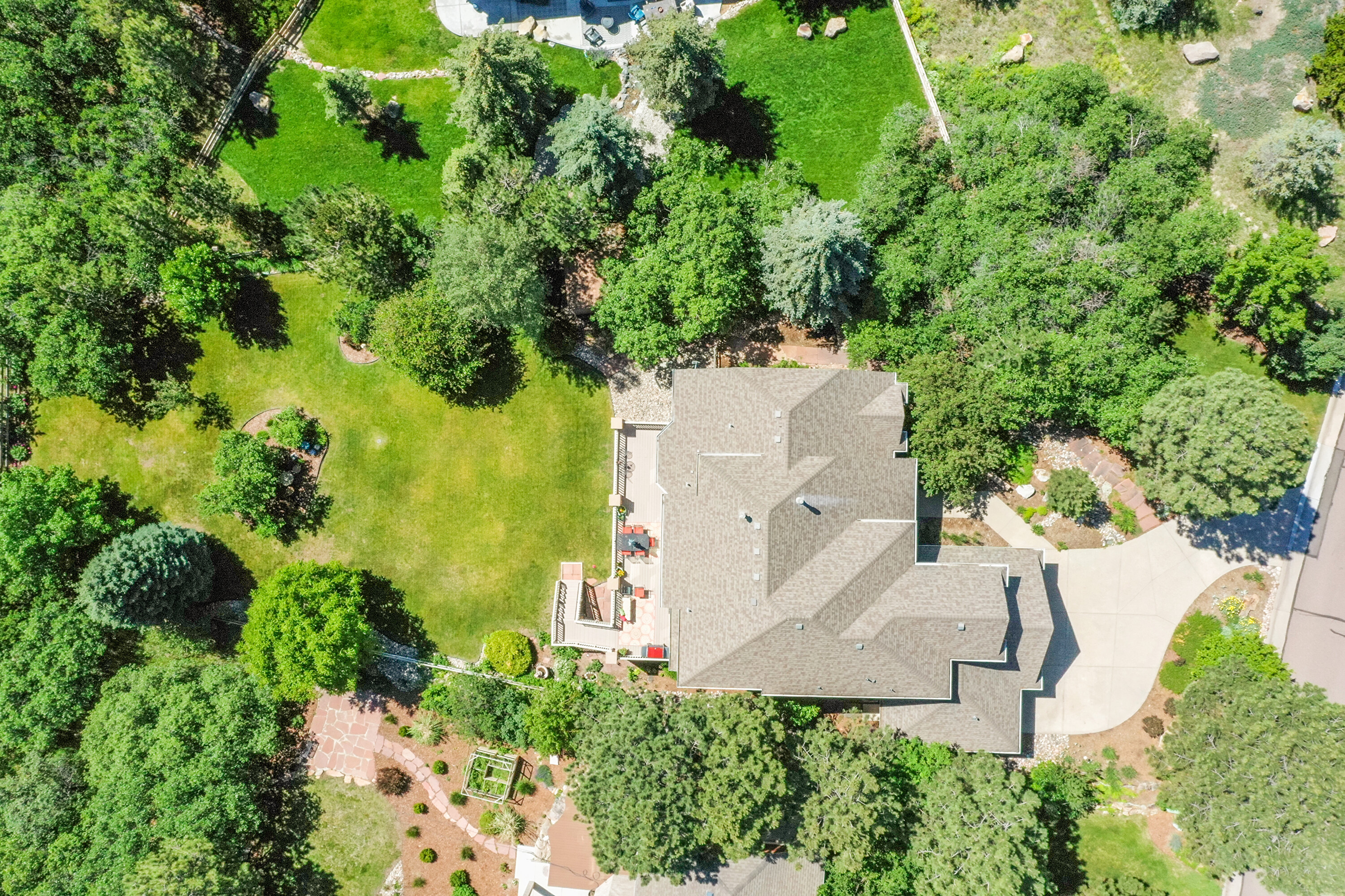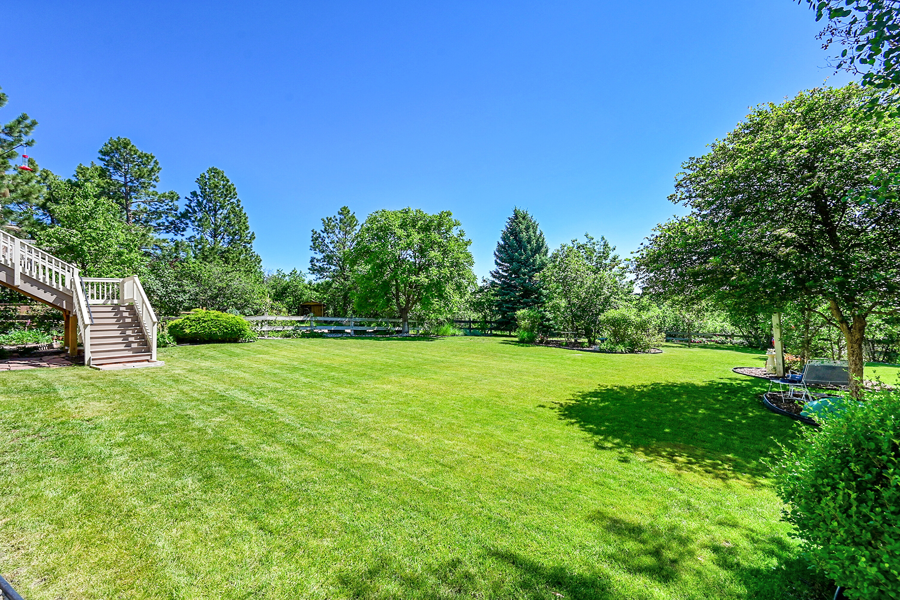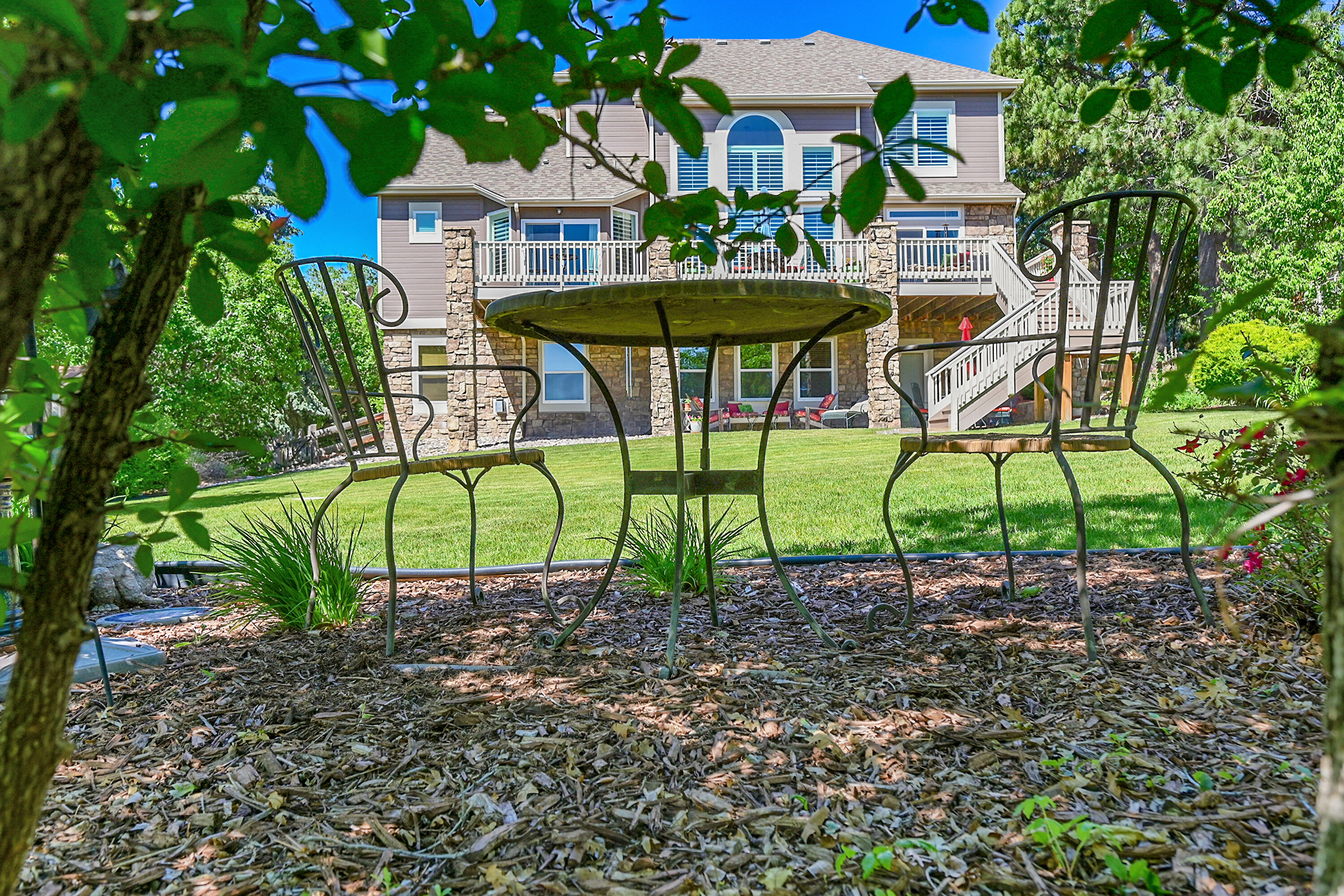 Outside, professional landscaping wraps around garden beds, sitting areas, and a large flat lawn framed by mature trees and thoughtful plantings. Irrigation and drip systems make it all low-maintenance. Even the details—from new deck stairs and iron spindles to upgraded lighting—reflect smart investment and care.